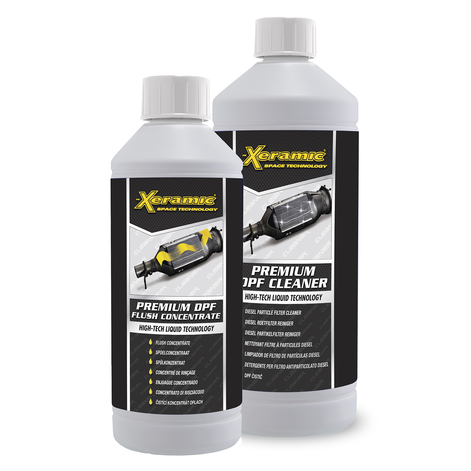 A Xeramic Prémium DPF tisztító készlet két flakont tartalmaz: