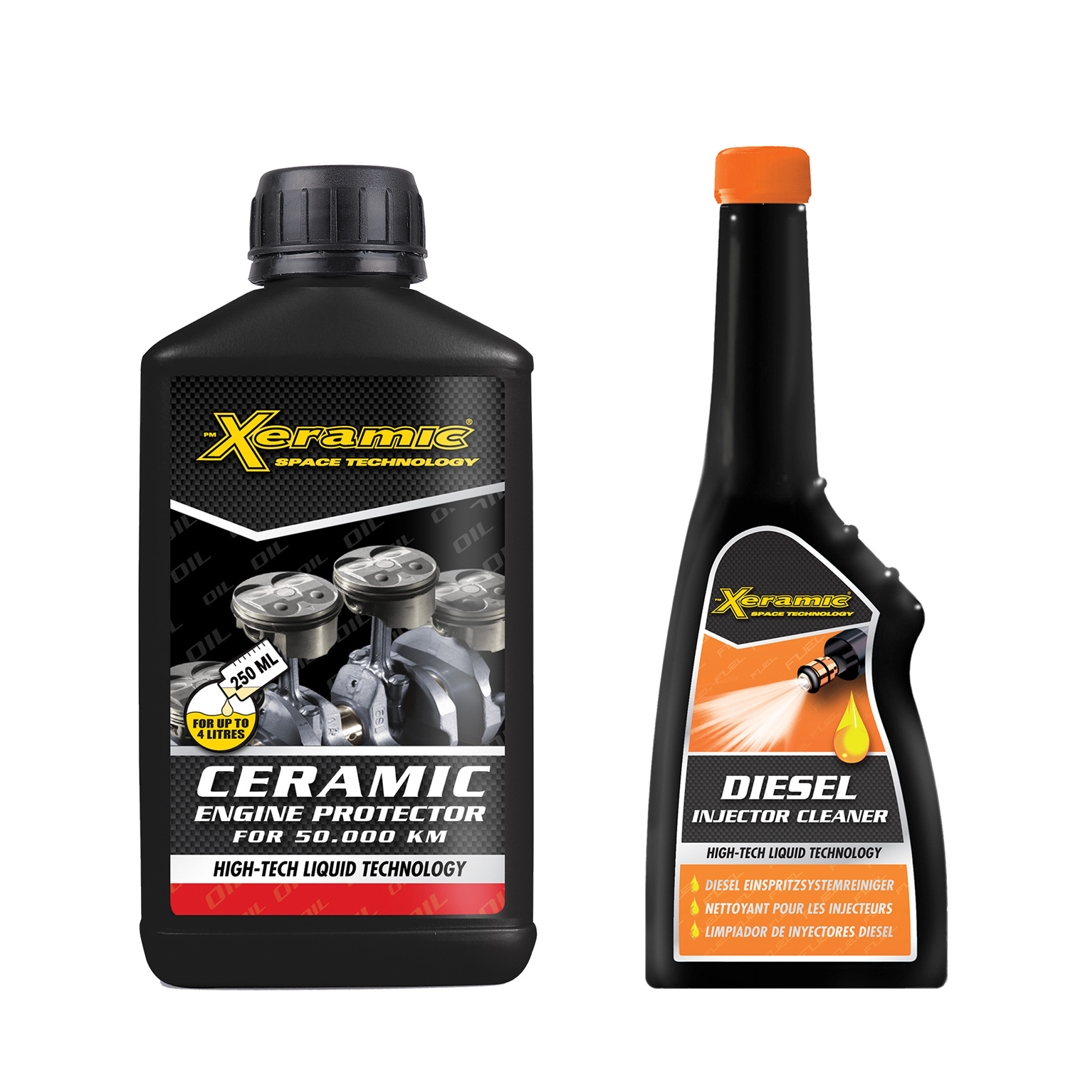 A Xeramic Dízel Kerámia Motorvédelem adalékcsomag – kicsi – csomagot bármely típusú, dízel üzemű és legfeljebb 4 liter motorolaj mennyiségű 4 ütemű motorhoz állítottuk össze. Az egyig legsikeresebb csomagunk az 1,0 – 1,4 literes nagyságú motorokhoz használható optimálisan, melyek hibátlan állapotúak, illetve a motorolaj fogyasztásuk 0- 1 liter / 10.000 km közötti. A Xeramic Dízel Kerámia Motorvédelem adalékcsomag rendszeres használatának előnyei a csendesebb, dinamikusabb járás, alacsonyabb üzemanyag fogyasztás, és az extrém kopásállóság biztosításával a motor forgó elemeinek az élettartam növekedése. A Xeramic Dízel Kerámia Motorvédelem adalékcsomag adalékai új autó esetén, az első 10.000 km után, később bármely esedékes normál karbantartáskor, műszaki vizsga előtt, vagy közvetlenül egy hosszabb út előtt, szinte bármikor alkalmazhatóak. Olajadalékok használatakor, fontos a megfelelő olajszint beállítása!
