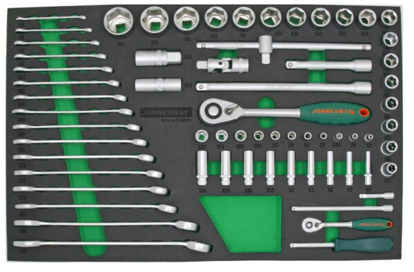 Jonnesway Dugó és villáskulcs készlet 65 db-os , polifoam tálcán