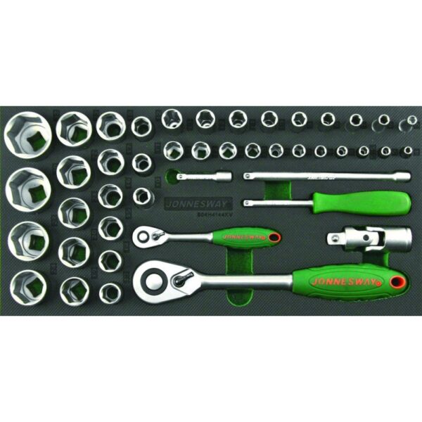 Jonnesway Kézi dugókulcs készlet 1/4″-1/2″ , 44 db-os , polifoam tálcán
