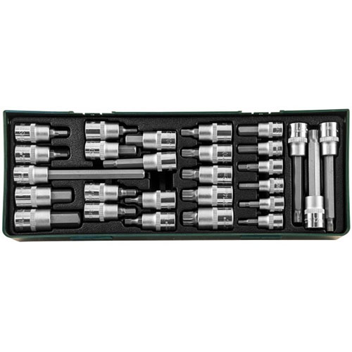 Jonnesway Torx-, Imbusz- és XZN készlet, 27 db –os, ½ ” és 3/8 ” tálcán (S06H427SP)