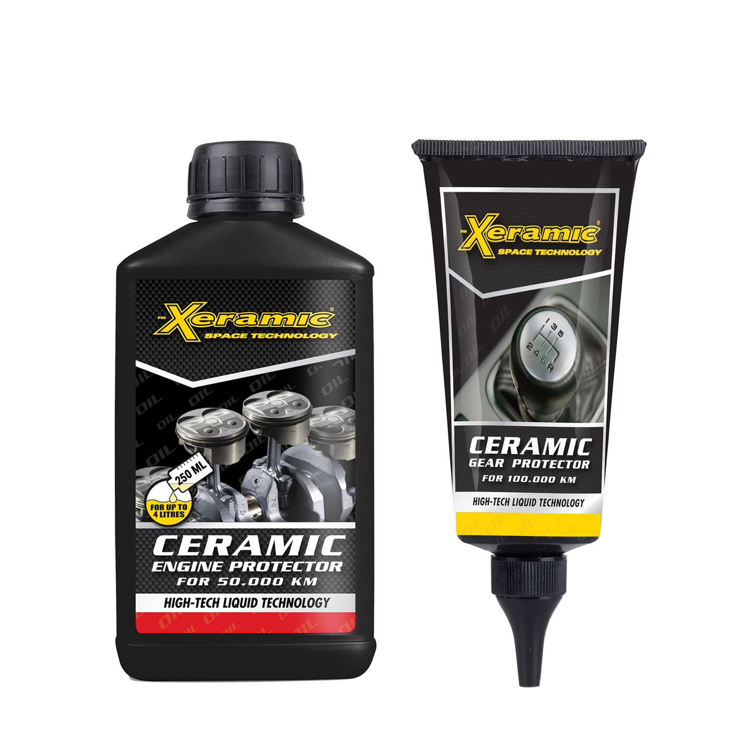 Xeramic Kerámia motor és váltó adalék csomag, mely egy tartós kerámia felületvédelmet biztosít a motornak és a mechanikus váltónak egyaránt. A Xeramic egyedülálló fejlesztéseivel garantált és azonnali vezetési élményben lesz része, a hosszan tartó élettartam biztosítása mellett. A Kerámia motor és váltó adalék csomag alkalmazható bármilyen típusú, legfeljebb 4 liter motorolaj feltöltési mennyiségű, 4 ütemű motorral, és maximum 2,5 liter váltóolaj feltöltési mennyiségű, mechanikus váltóval szerelt járművekhez. A Xeramic kerámia adalékai garantáltan biztonságosak bármely gépjármű típus számára. TÜV bevizsgált, nemzetközileg elismert minőségű termékek.