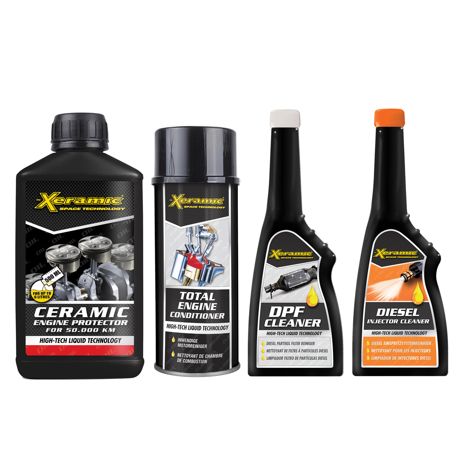 A Xeramic Dízel Motorvédelem Koncepció – nagy – Egy különleges karbantartás kiegészítő csomag, bármely típusú, 1,41 – 2,2 literes, dízelmotoros autók számára. Különösen ajánlott, kis távolságokon használt járművek karbantartásának kiegészítésére (20-30.000 km –ként, közvetlenül a motorolaj cserék előtt). A Xeramic Dízel Motorvédelem Koncepció különösen javasolt, amennyiben a motorolaj fogyasztás már 1-2 liter/10.000 km, illetve az autót ritkán használják. Ilyen esetekben különösen fontos a motor belső felületének korrózió-, és kopás elleni védelme.